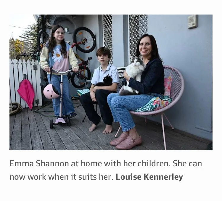 Emma was featured in the Australian Financial Review in June 2025 sharing an authentic perspective on the juggle: caring responsiblities, career, and what balance really looks like behind the scenes.